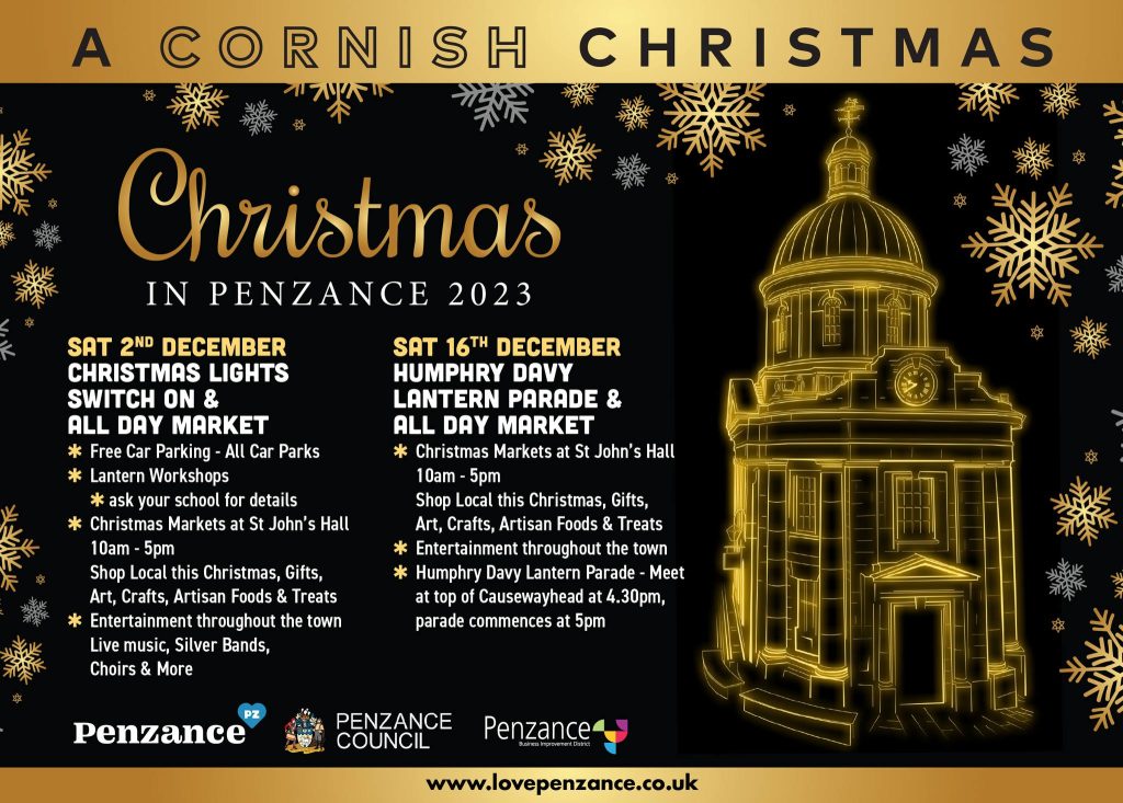 Here’s a round-up of the events taking place in Penzance over the next three weeks in the run up to Christmas 2023!