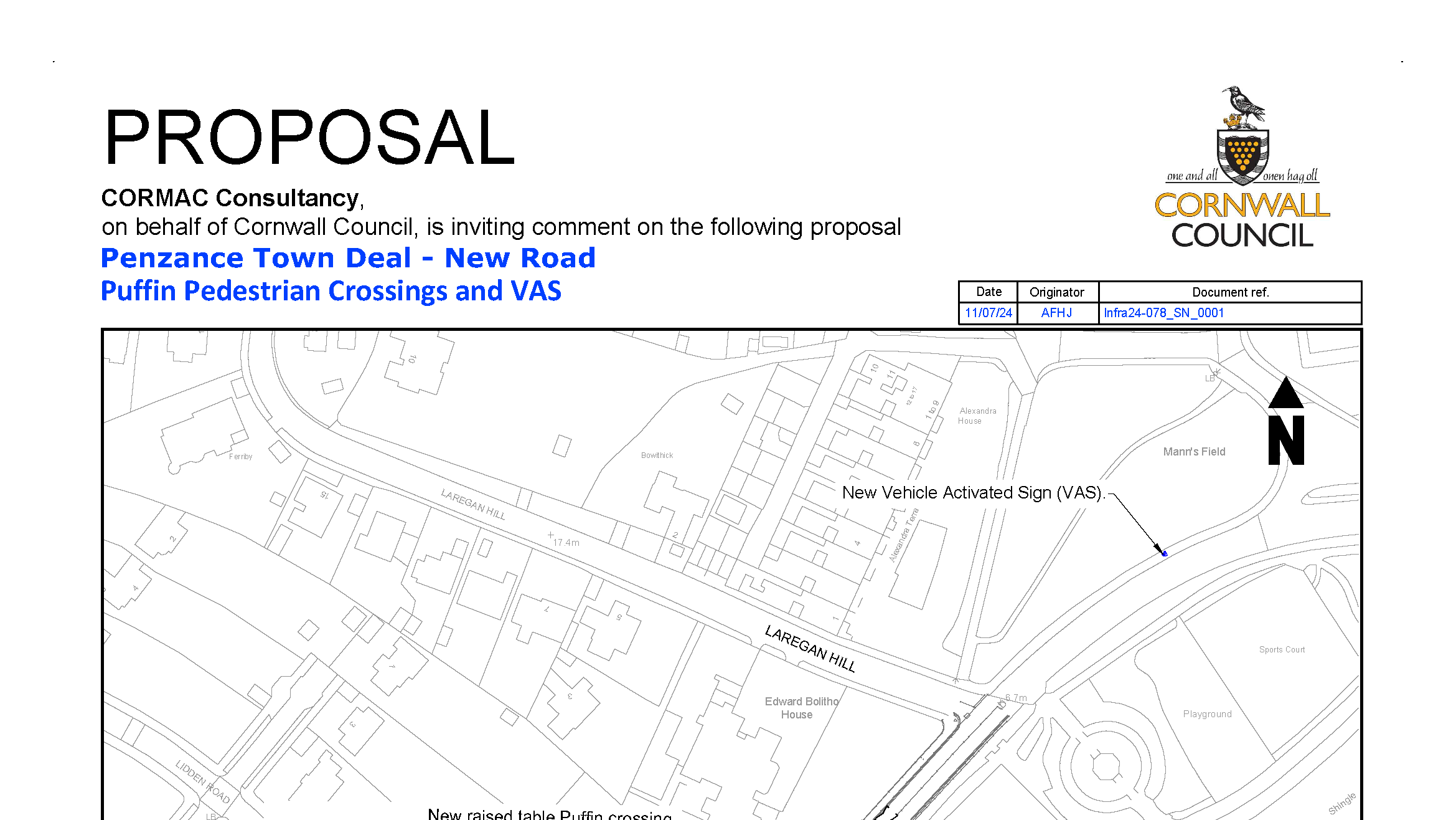 Cormac on behalf of Cornwall Council is inviting comments on a proposal to improve pedestrian access to Newlyn Green across New Road, Penzance.