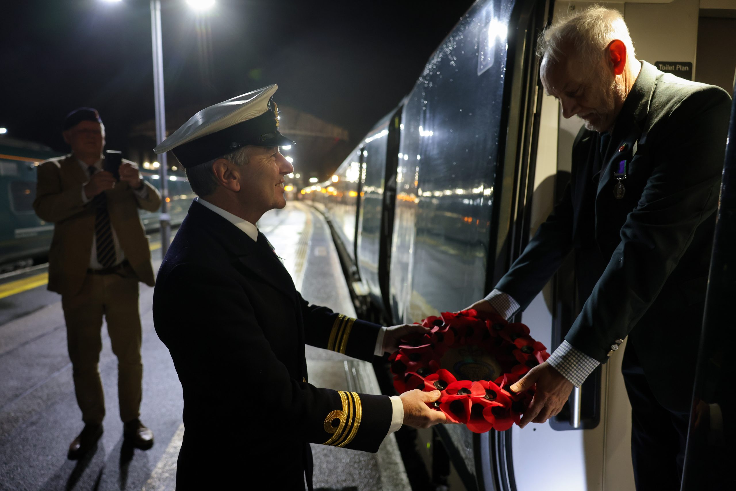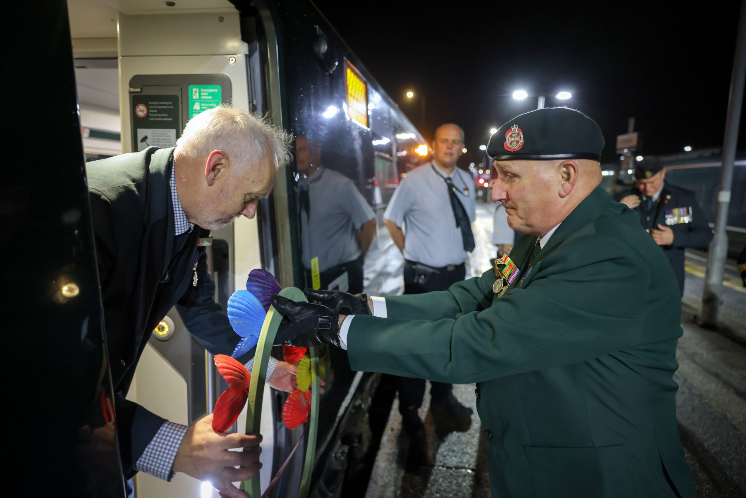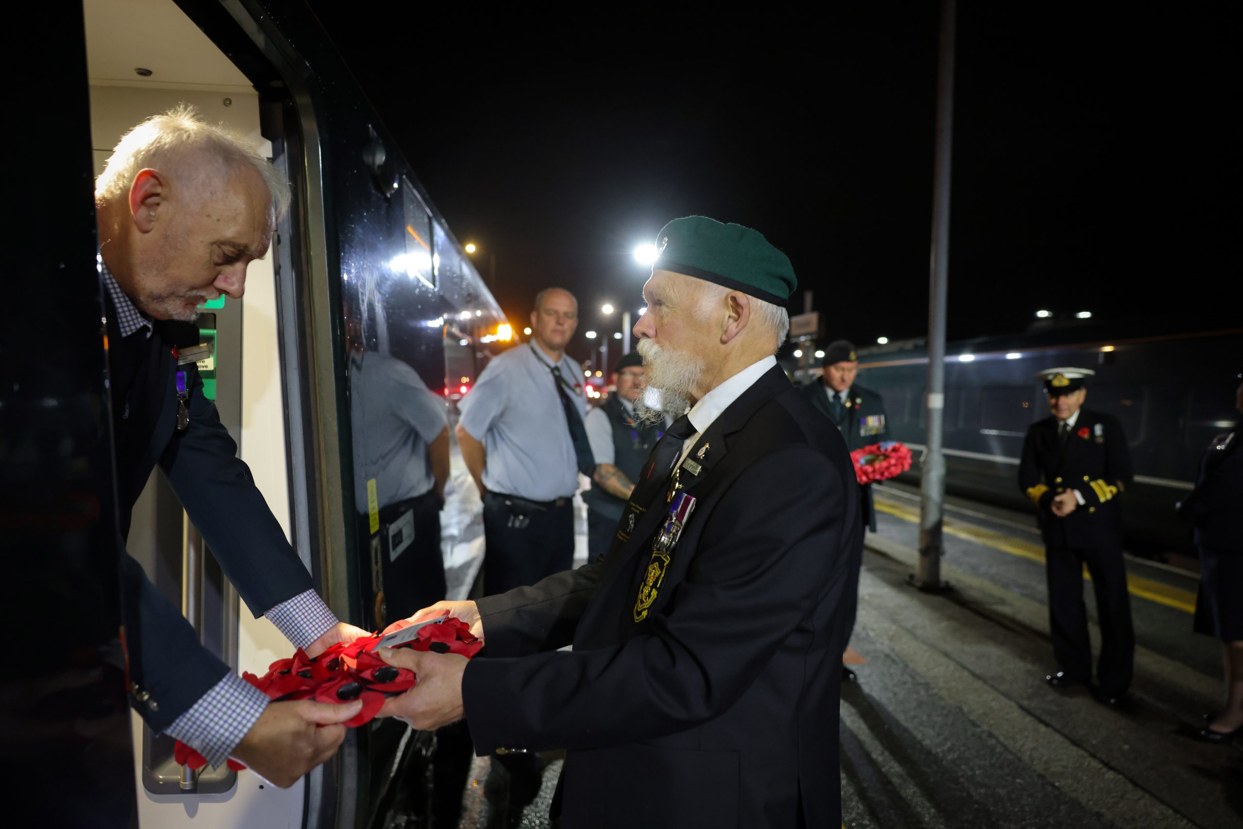 Acts of Remembrance began early in Penzance on Armistice Day, Tuesday 11 November, when the Mayor of Penzance joined representatives of Armed Forces charities to lay wreaths on the 5.03am GWR ‘Poppies to Paddington’ train as part of Routes of Remembrance 2025.