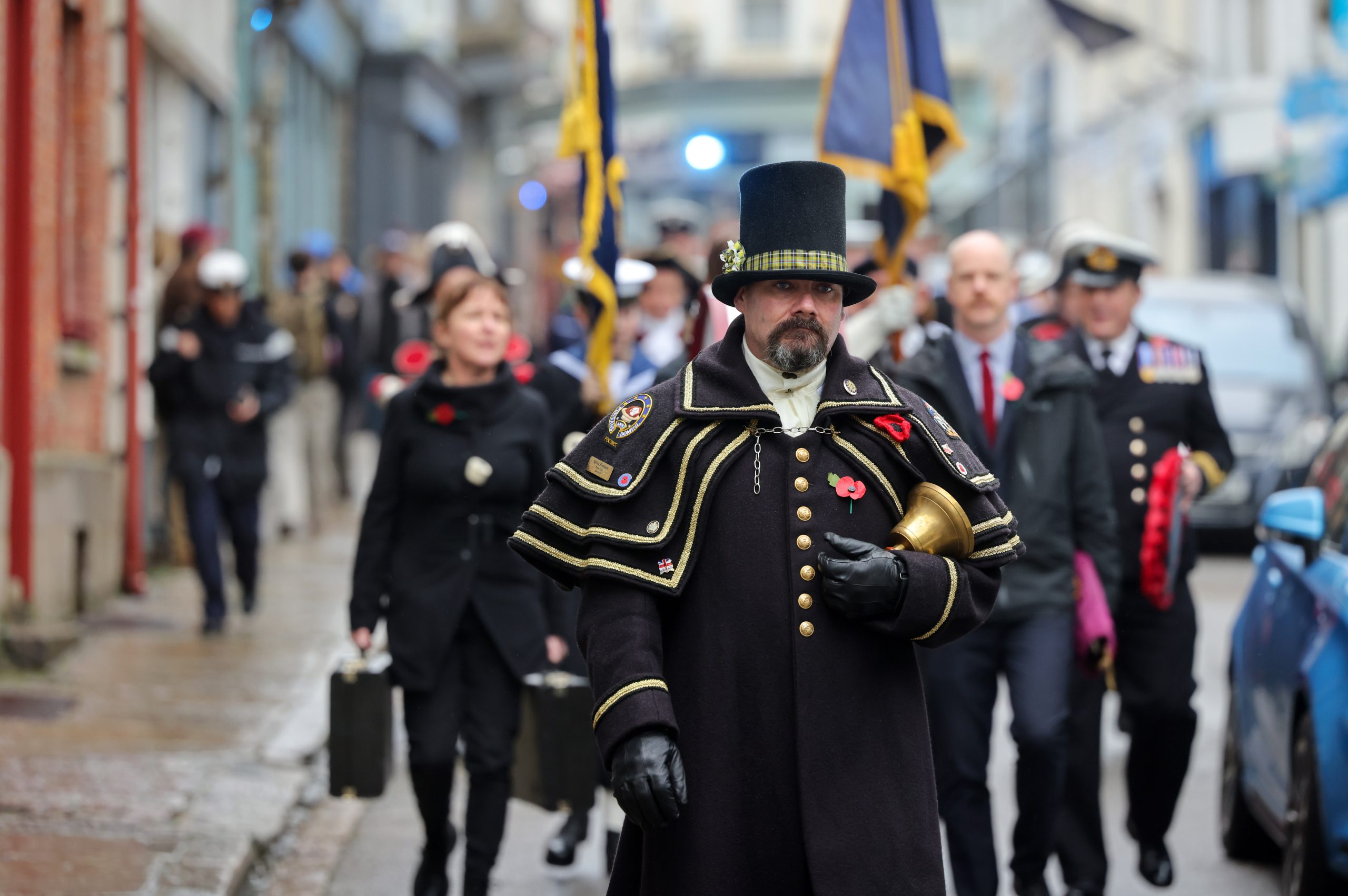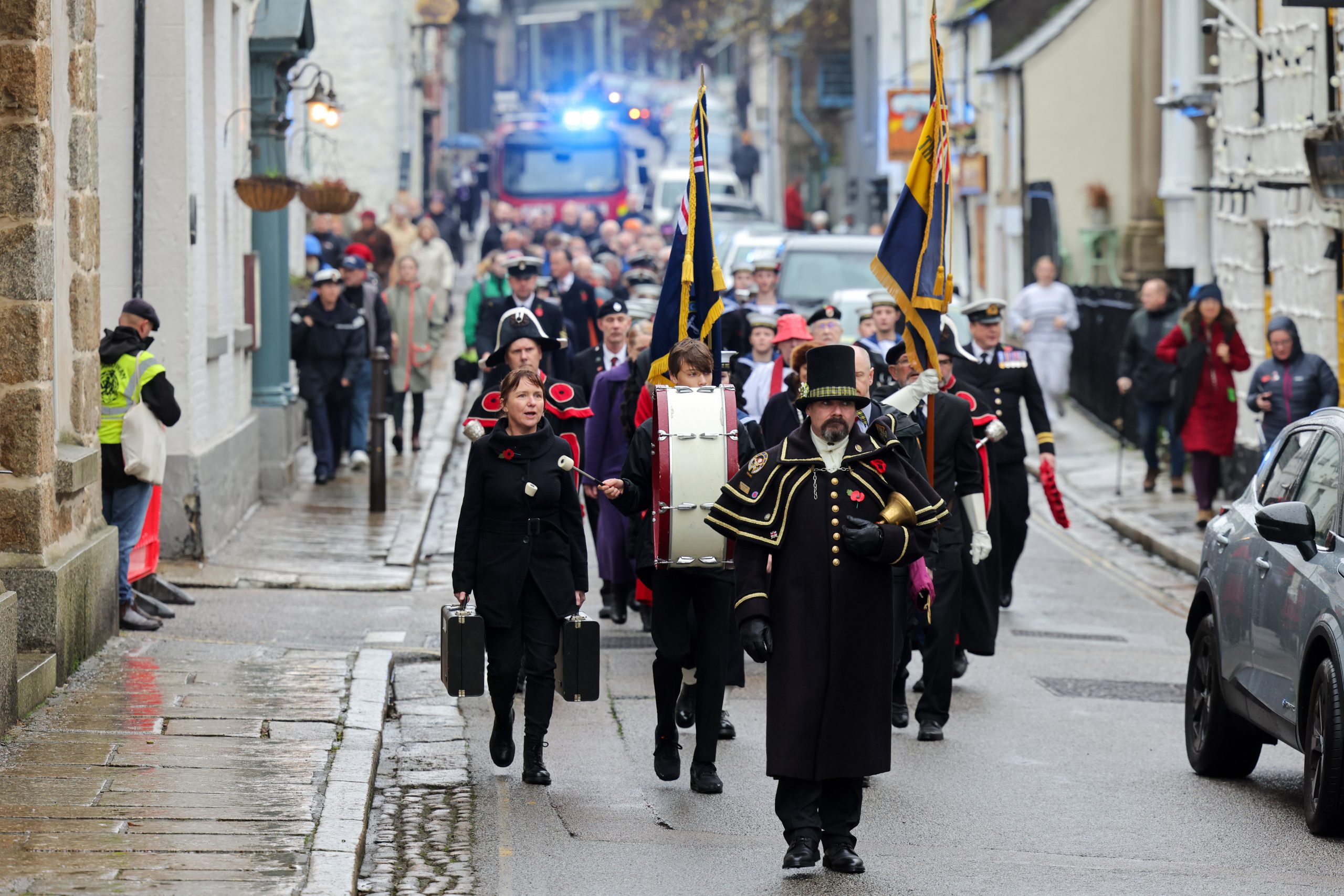 Penzance Council would like to thank Penzance Town Crier Phil Northcott, and Humphry Davy School music teacher Matt Street who played The Last Post. Thanks also to everyone who took part in the parade and service and to all the members of the public who attended the service despite the weather.