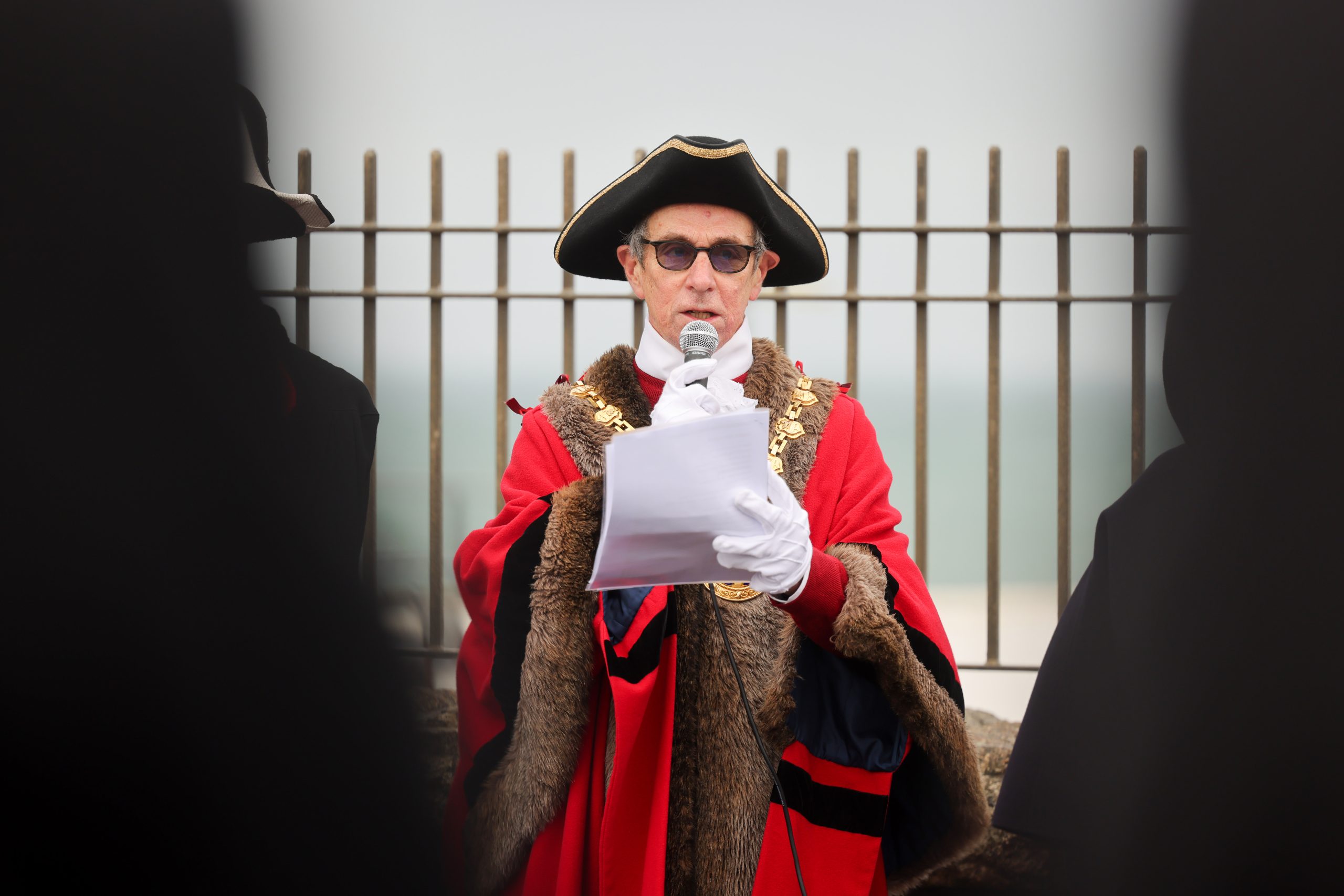 Thanking the large crowd that gathered at the war memorial for braving the elements, Mayor of Penzance Stephen Reynolds continued: