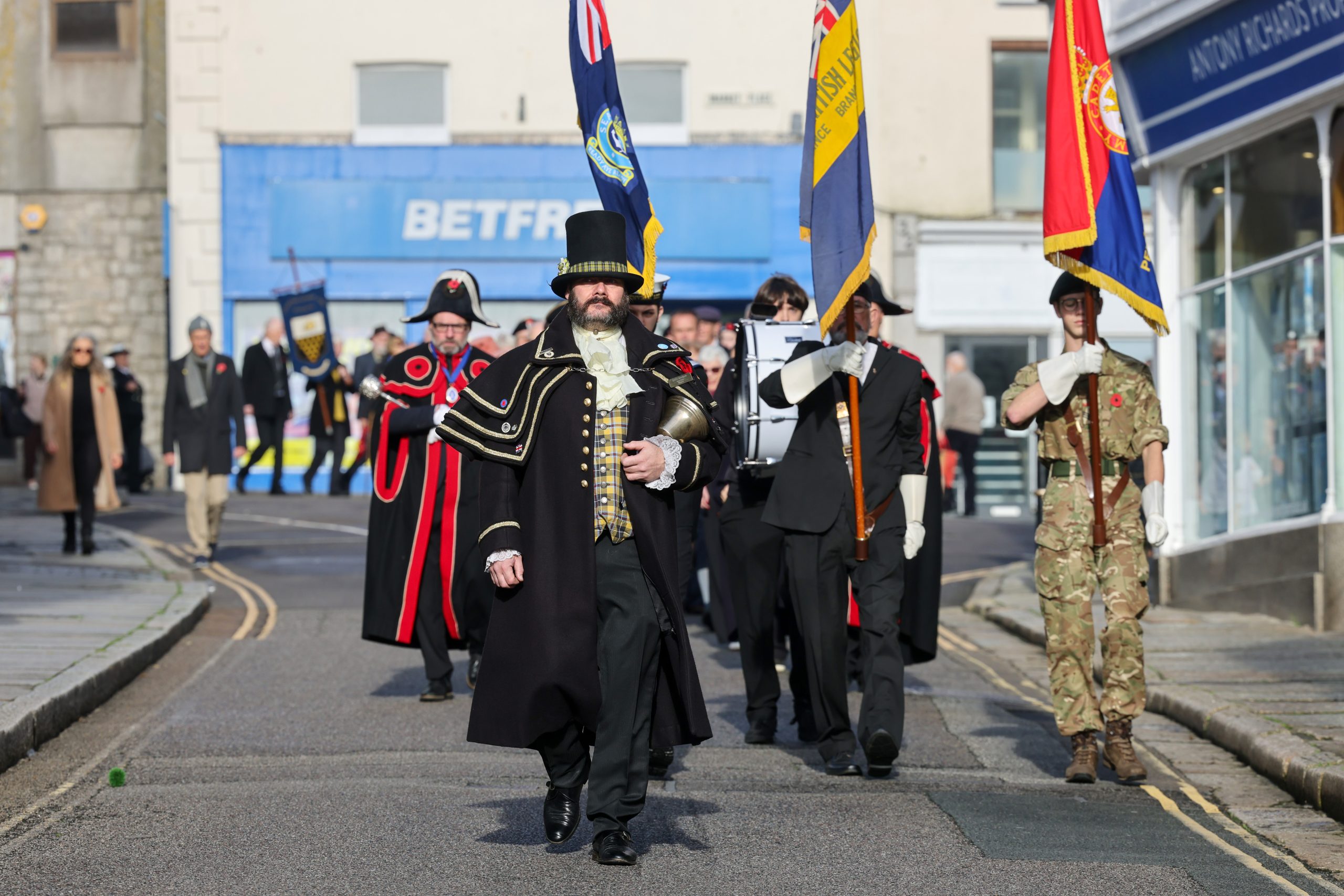 Penzance Council would like to thank Penzance BID and Jubilee Pool for their support of the event, Penzance Town Crier Phil Northcott, and Isaac Hutchings who played The Last Post. Thanks also to everyone who took part in the parade and service and to all the members of the public who lined the route and attended the service.