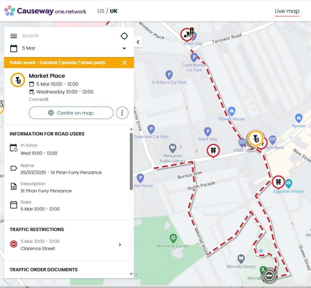 A road closure will be in place for the St Piran Furry on Wednesday 5th March from 10am – 12noon. The roads affected will be: