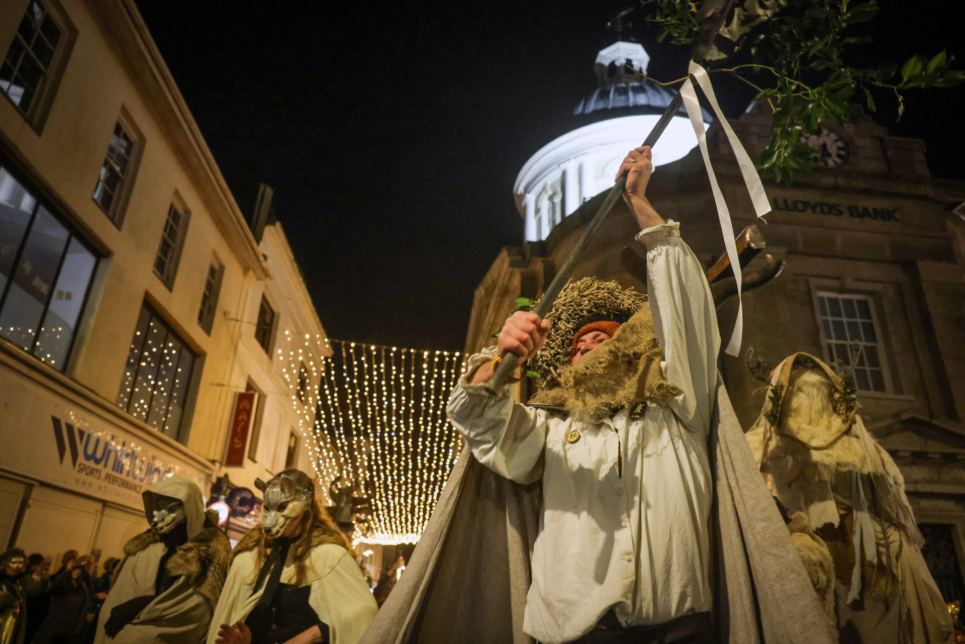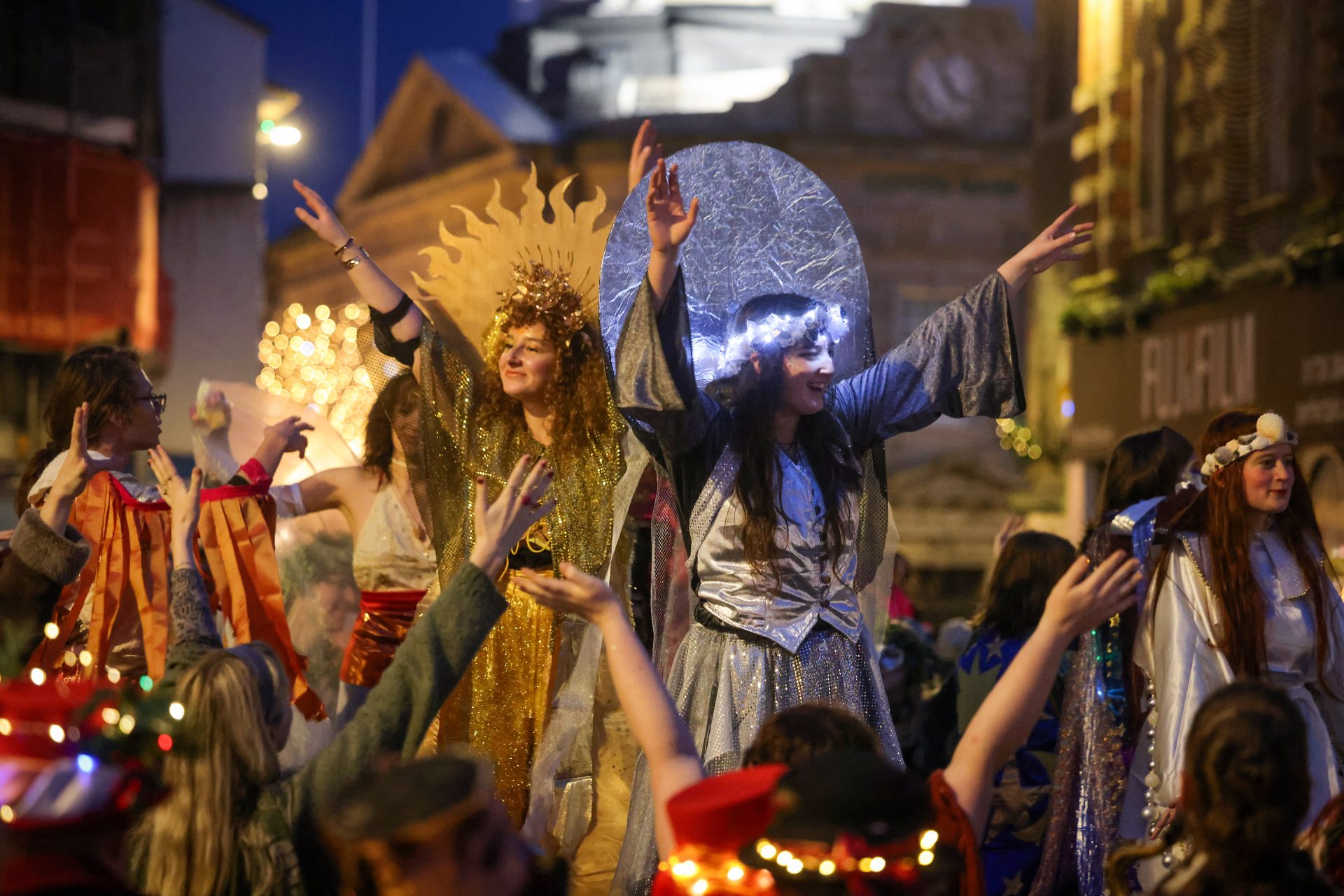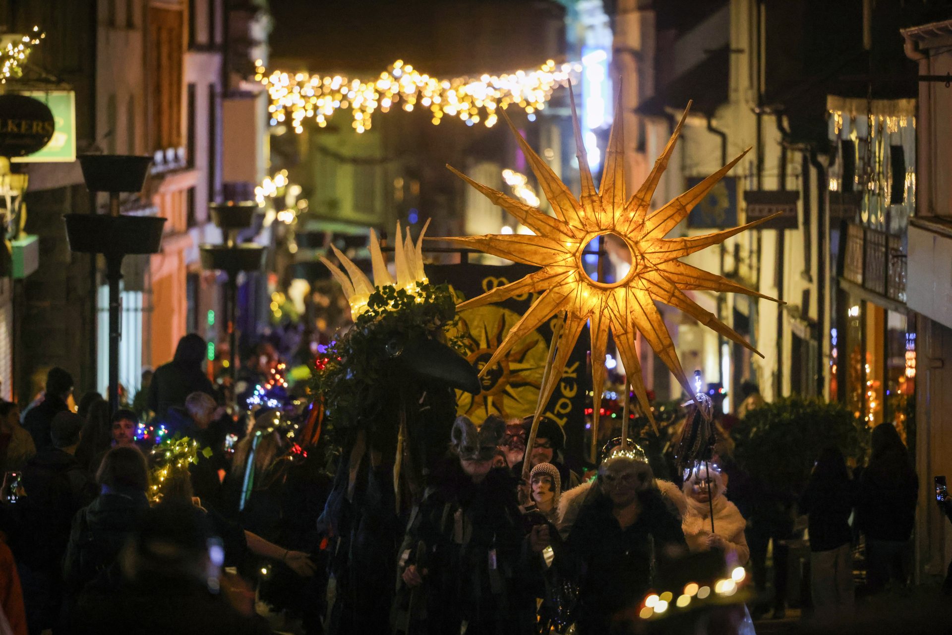 From early afternoon on Sunday, ‘Beasts’ and ‘Osses’ such as Pen Hood, Maw Bras and Alargh Du could be seen roaming the town, whilst Morris sides and carol singers gathered to perform. However, the real festivities began with the setting of the sun at 4.21pm, signalling the start of the Sundowner Parade.