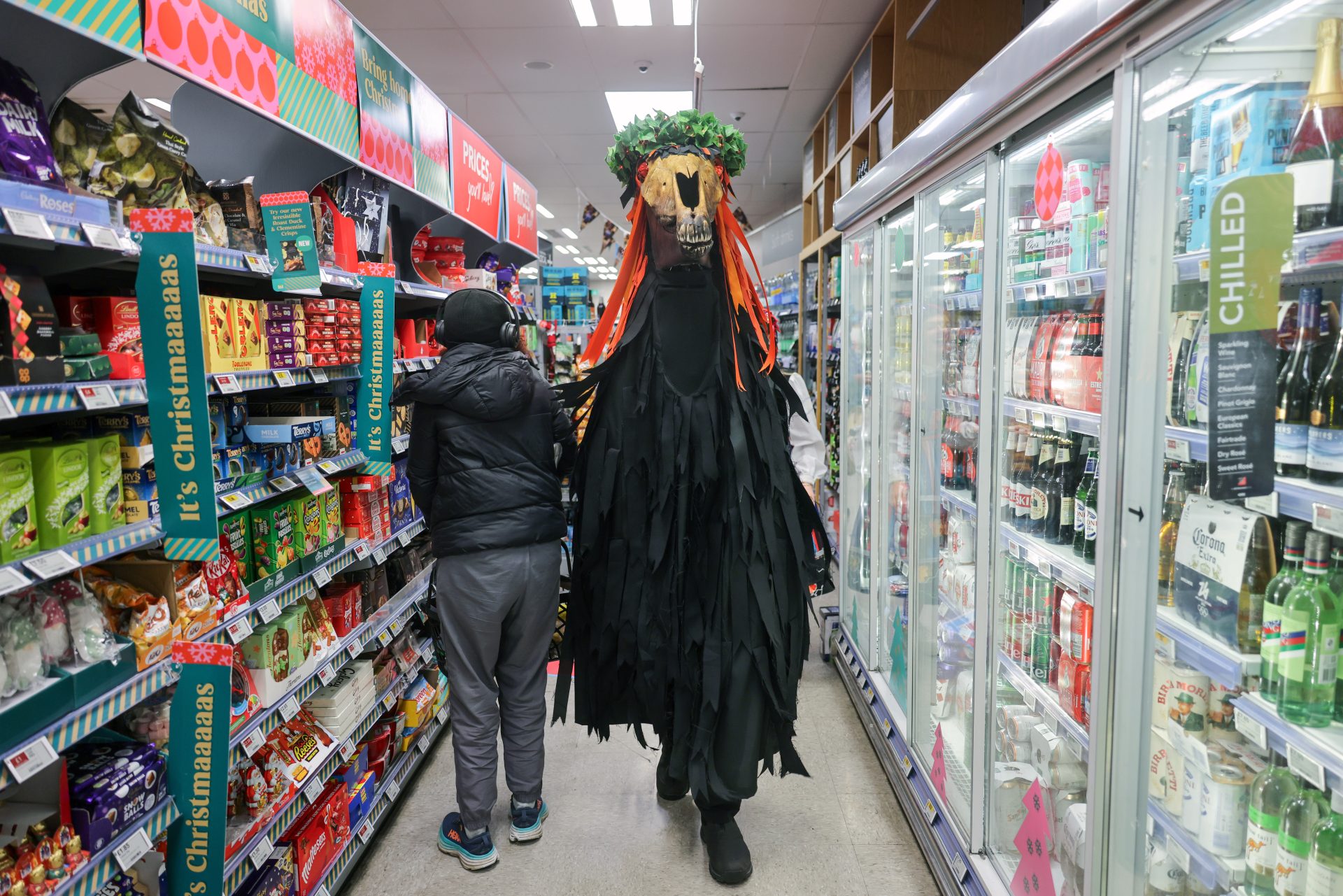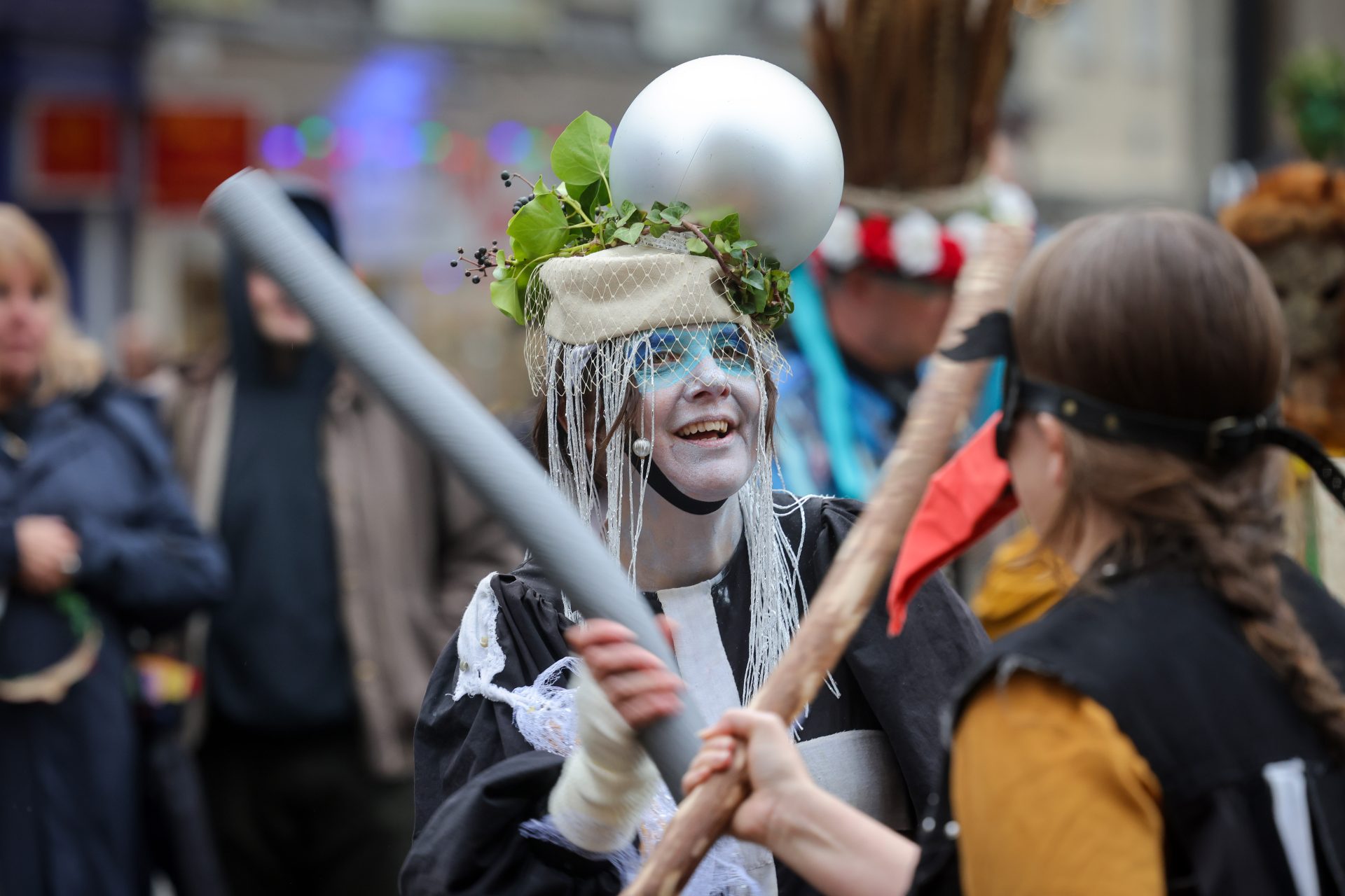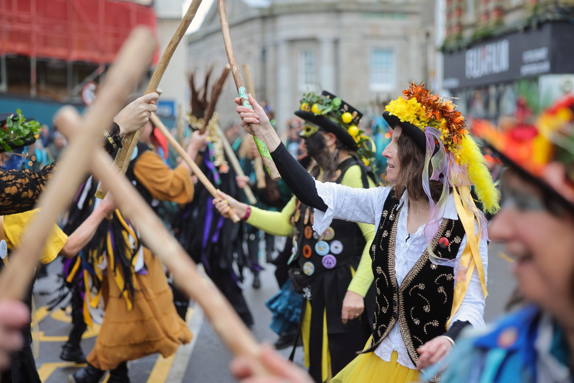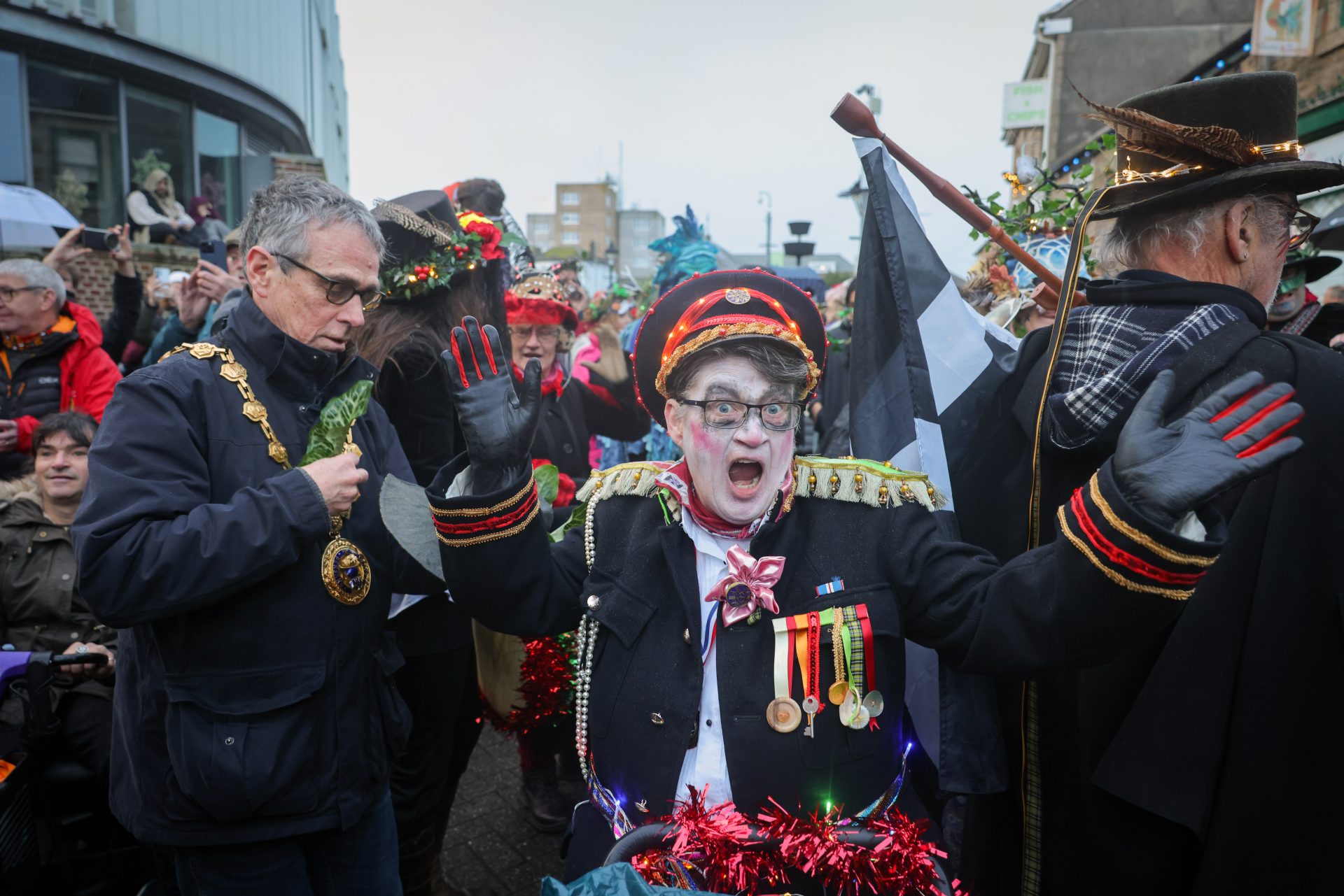From early afternoon on Sunday, ‘Beasts’ and ‘Osses’ such as Pen Hood, Maw Bras and Alargh Du could be seen roaming the town, whilst Morris sides and carol singers gathered to perform. However, the real festivities began with the setting of the sun at 4.21pm, signalling the start of the Sundowner Parade.