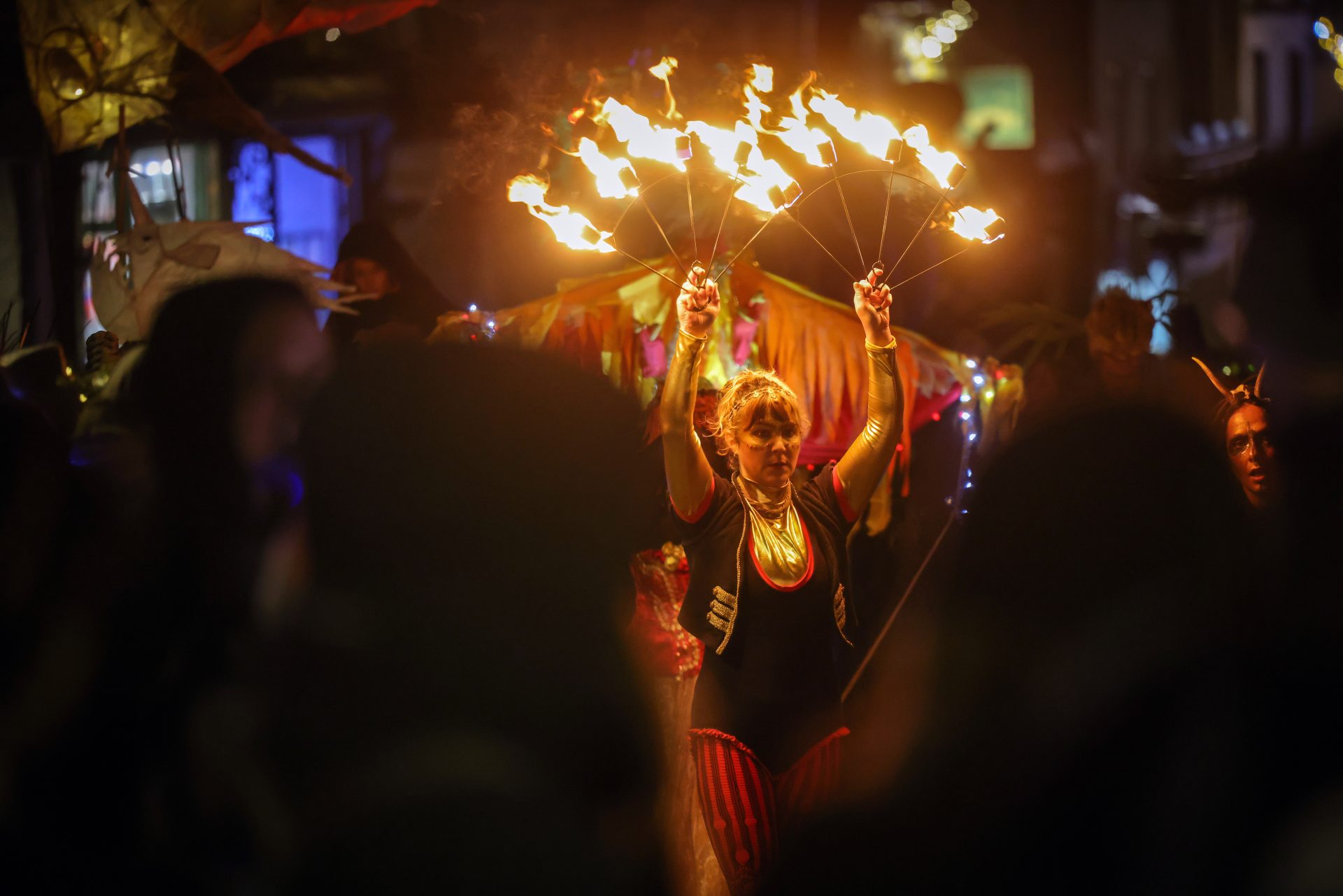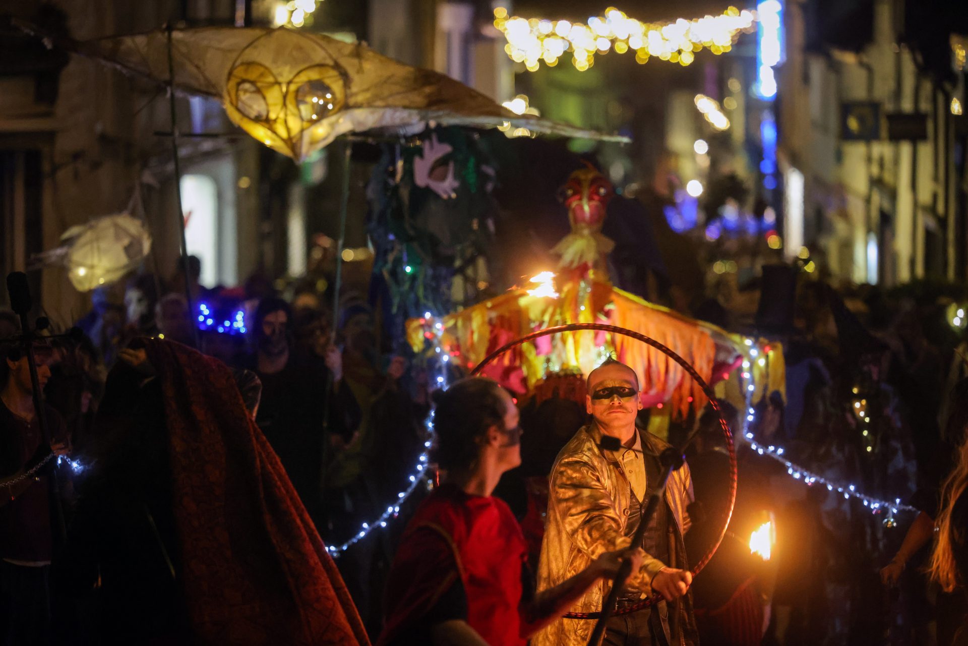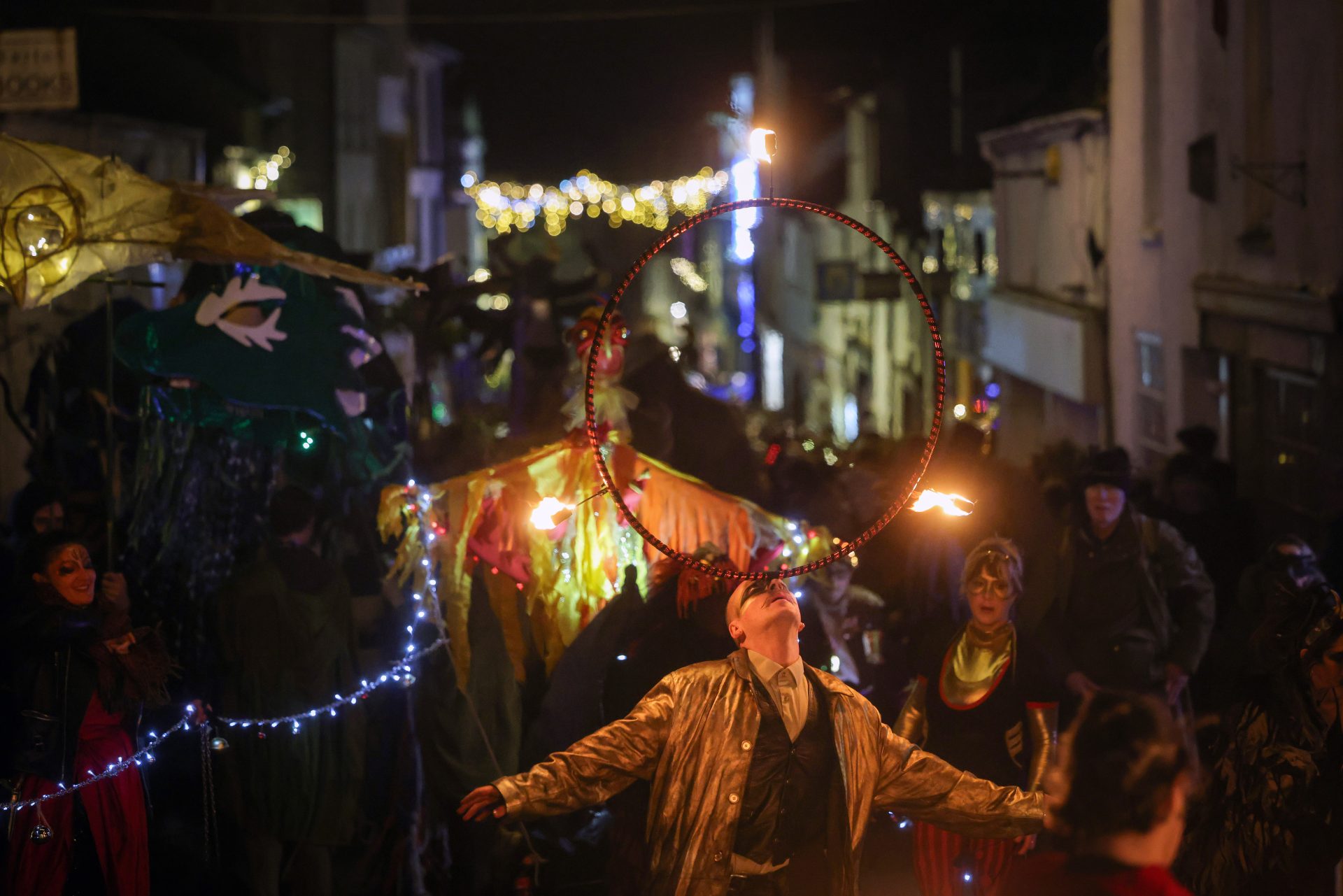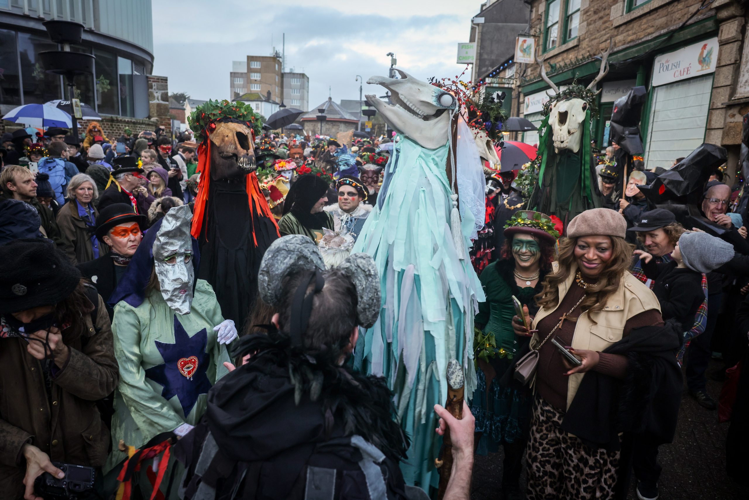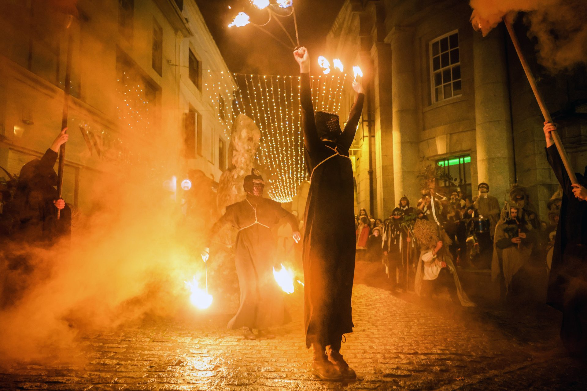 Funded by Penzance Council, the event sees local residents and visitors alike donning elaborate costumes to take part in the parades which begin at sundown, and carry on well into the night.