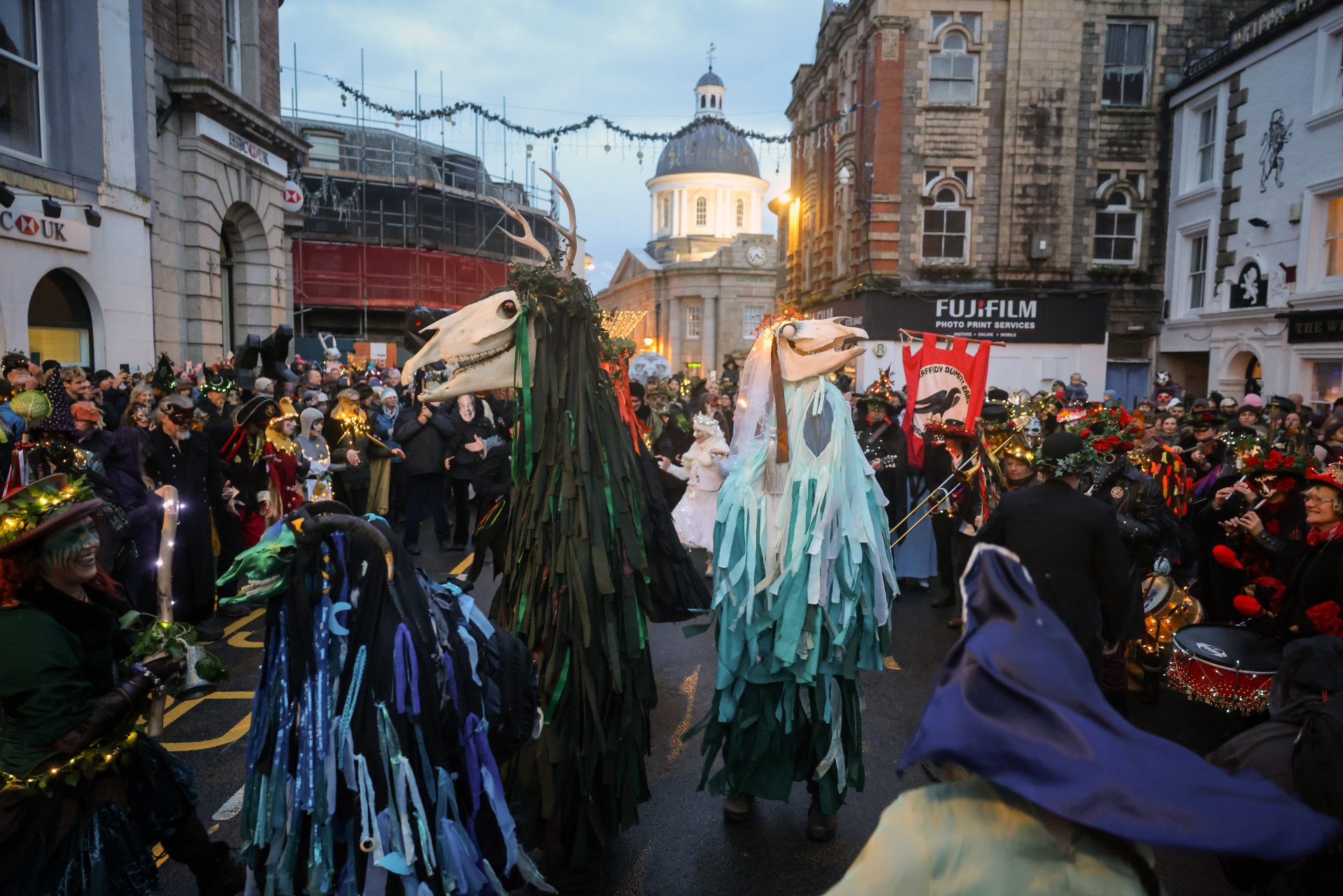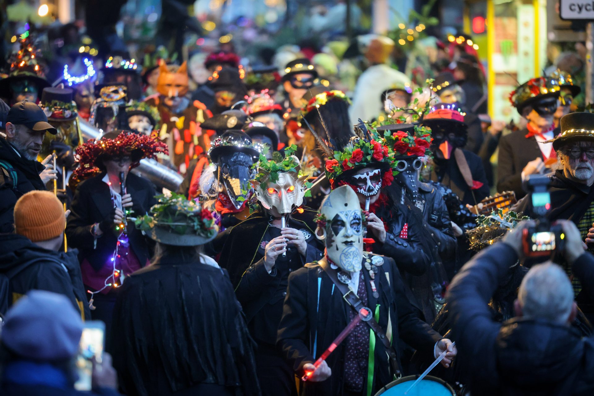 The midwinter solstice was celebrated with misrule on Sunday 21 December as thousands came together in Penzance to ‘turn the world upside down’. The longest night of the year saw fire, beasts and masked revellers filling the streets for the return of the increasingly popular Montol Festival – a community event celebrating the midwinter solstice, Cornish midwinter traditions of the past, and customs associated with Old Christmas.