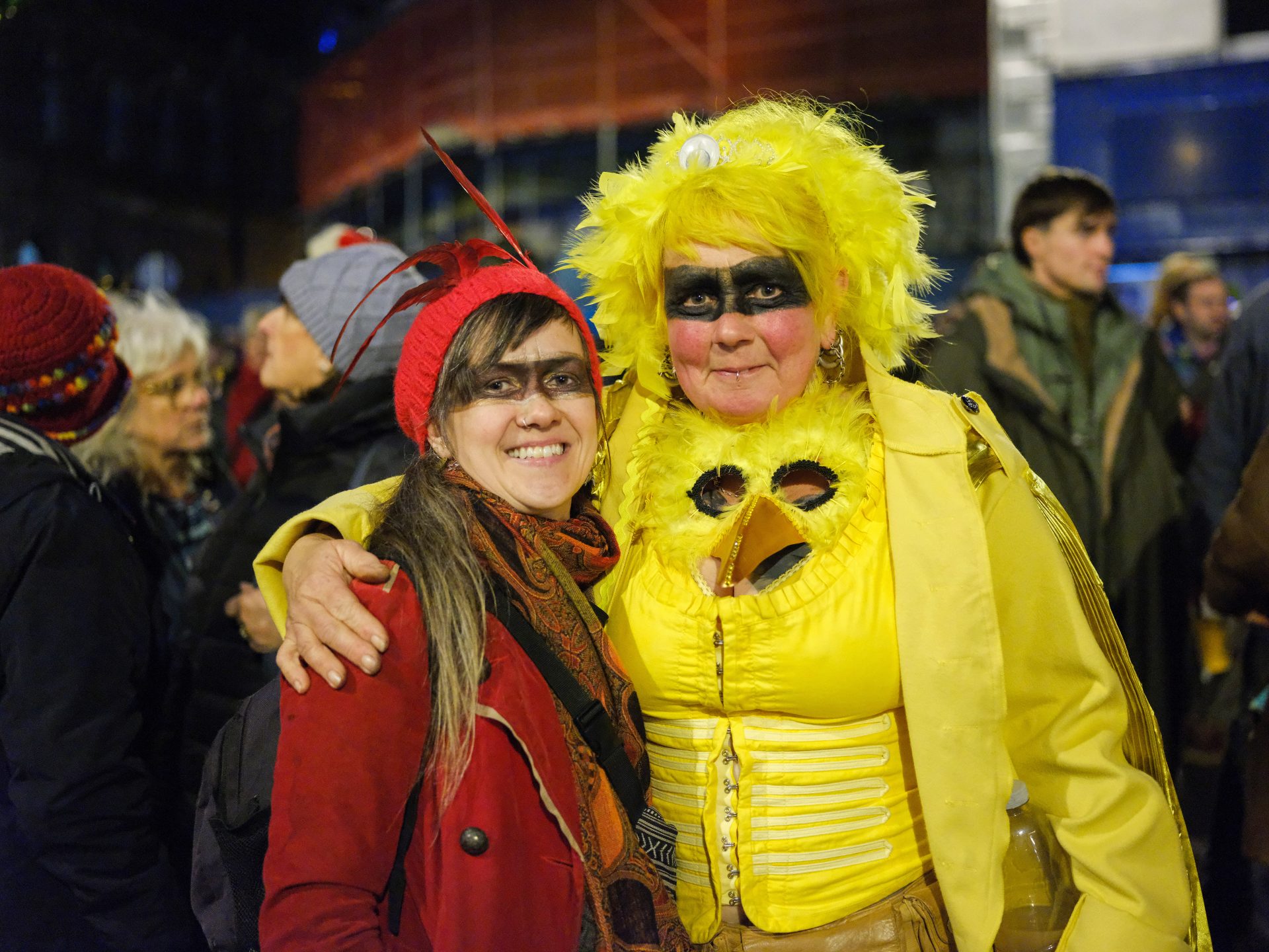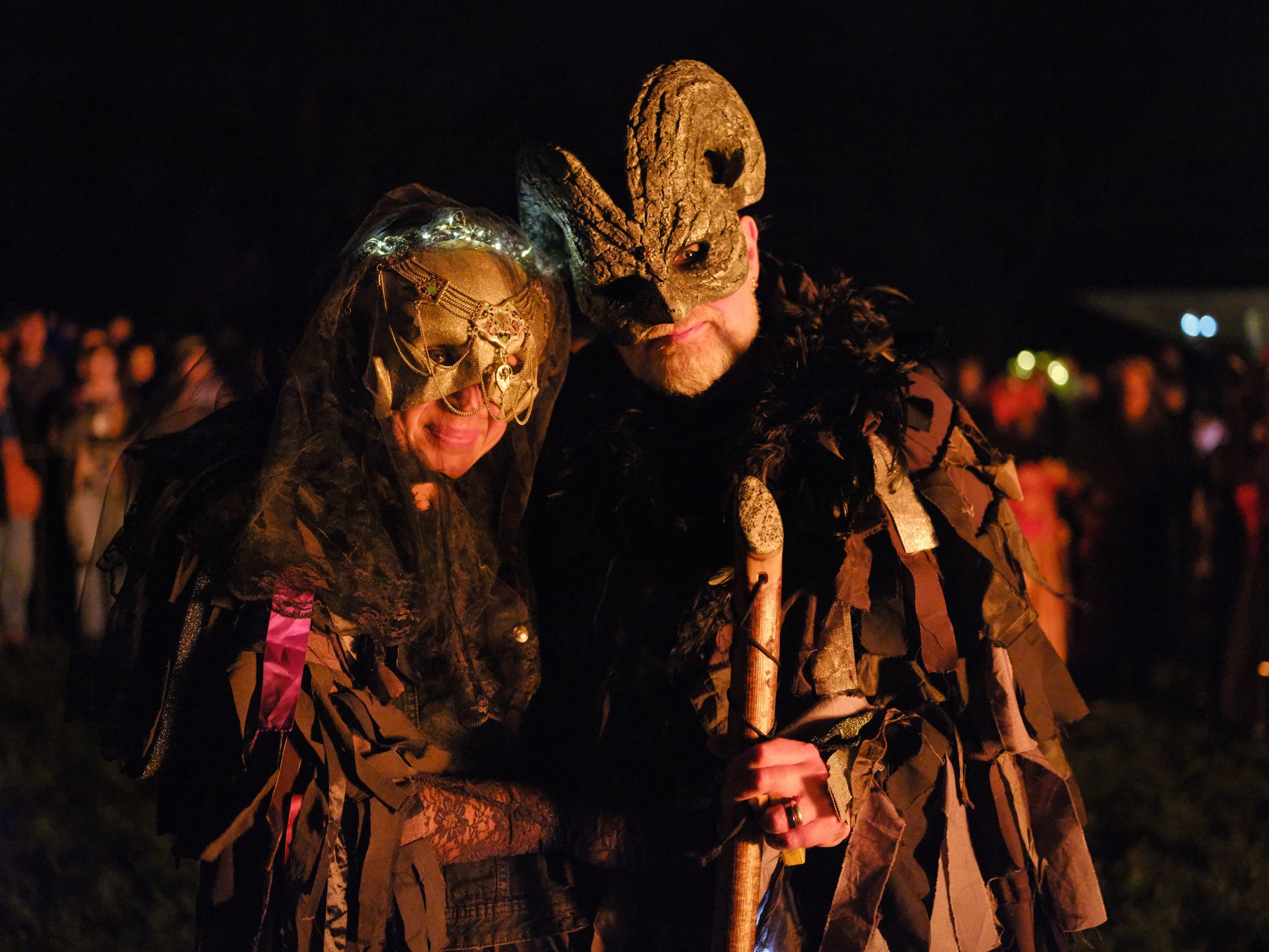 The number of Guise Guilds grows every year at Montol, with some taking their inspiration from descriptions of similarly-named groups from early in the 19th century. The present-day guilds are still based on the tradition of friends getting together in small groups, and producing costumes linked to themes. The oldest surviving guilds are The Cornmarket Revellers and The ‘Gyptians, joined in recent years by the Physicians, the Turks, The Peccadilloes, The Scaleybacks, The Frolicking Fishy Folk, The Radical Ramblers, The Coddiwomplers, The Hwymm Hwamm Hyggas, The Hedgerows, The Tatty Mummers, and The Sticklers.